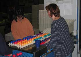 Nicht nur zur Osterzeit werden bei uns Eier gekocht und gefärbt. Auch während des ganzen Jahres produzieren wir wöchentlich frische Picknickeier, die sich einer regen Nachfrage erfreuen.